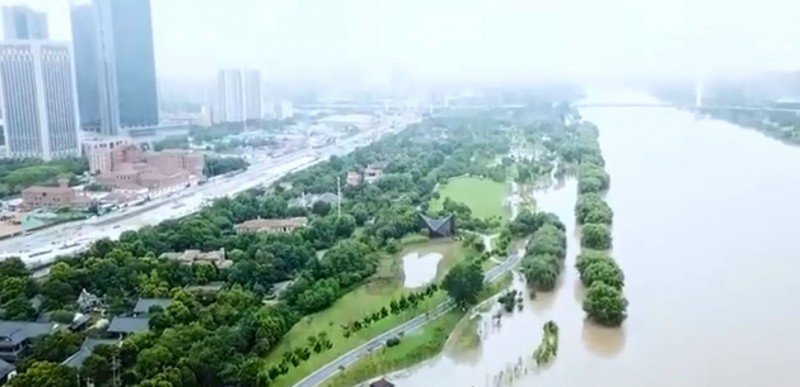 根據《揚子晚報》報導,長江下游的南京市水位全面超越警戒水位,已經創下歷史第3高,達到10.1公尺,最高紀錄為1954年創下的10.22公尺紀錄,大通水測站的流量更達到每秒8.46萬立方公尺,流量排名為歷史第2,僅次於1954年的每秒9.26萬立方公尺,南京市防汛形勢相當嚴峻,《現代快報》影片顯示,目前河邊風景區的濕地公園、步道、景觀台已逐漸被淹沒。