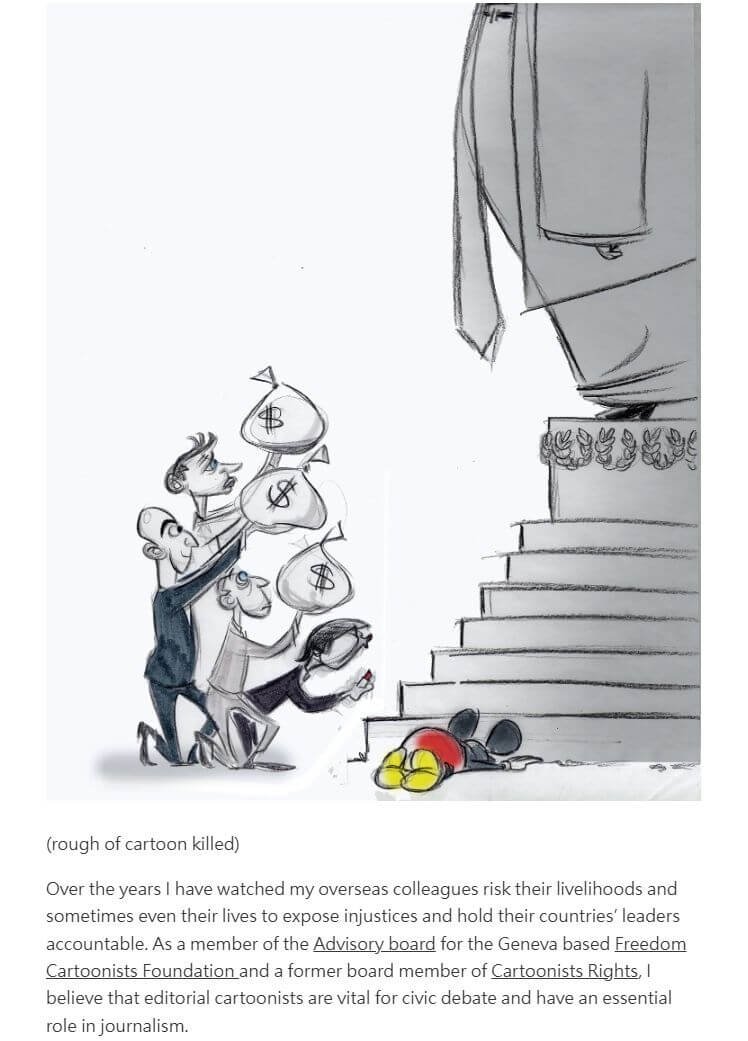 華郵社論版編輯希普利(David Shipley)在聲明中說:「我們才剛發表一個跟這個漫畫主題相同的專欄,也排定刊出另一個專欄,而且還是諷刺專欄。」聲明說,華郵「唯一的偏見是反對撞稿」。