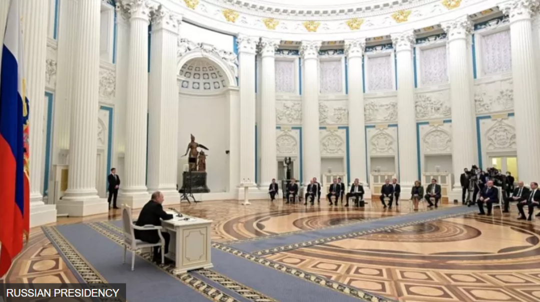 最近兩次精心策劃的決策層核心圈成員亮相中,普京看上去前所未見的孤立,與自己最親密的顧問保持著毋庸置疑的距離。