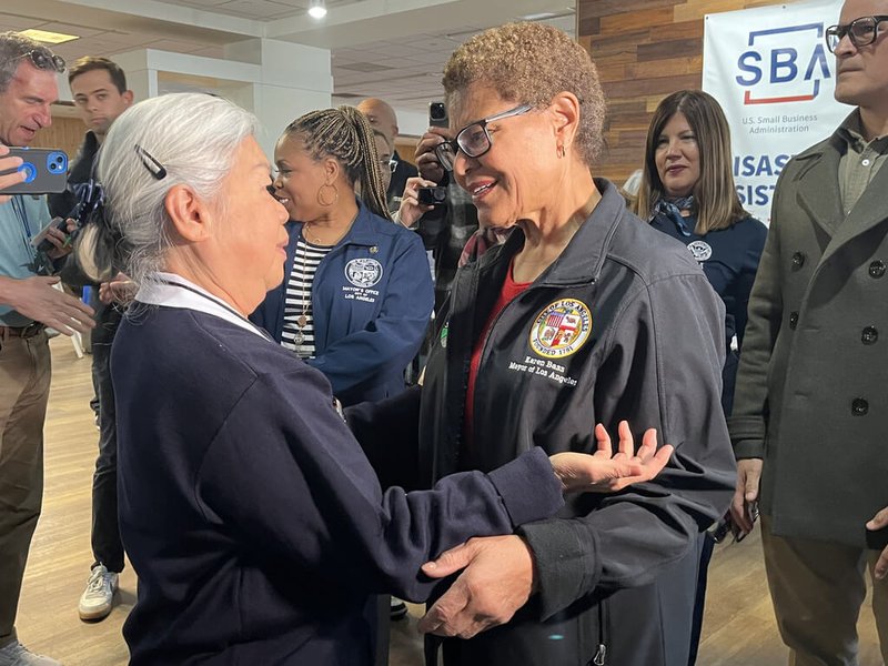住家遭到洛杉磯野火焚毀,仍為慈濟當志工,洛杉磯市長巴斯(右)視察「災難復原中心」時特別上前慰問,並在記者會上公開稱吳如真是「洛杉磯精神的典範」。.jpg)