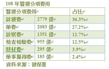 不過,外界仍認為應該先檢討資源浪費問題,進而有調整部分負擔聲浪。根據健保署統計,去年國內檢驗檢查費、藥費分別高達955億元、2083億元,占健保支出比例為12.5%、27.2%,是歷年新高,因此被列為部分負擔調整的首要對象。