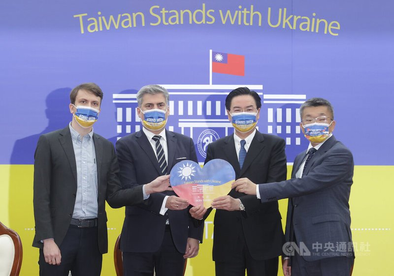 外交部今天舉行「賑災烏克蘭」記者會,說明烏克蘭賑災專戶愛心款項用途。出席者包括吳釗燮、立法院副院長蔡其昌、波蘭駐台代表高則叡(Cyryl Kozaczewski),烏克蘭網紅佳娜與她的弟弟安多利(Anatolii BAkurov),以及歐洲經貿辦事處長高哲夫(Filip Grzegorzewski)與多名捐款企業代表。