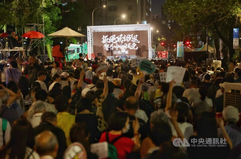 (中央社記者劉建邦台北20日電)反對「國會濫權」法案,多個公民團體今天續在立院外集結,晚間人潮漸增。主辦方在晚間約9時活動結束前,喊出現場人數已達8000人,並再呼籲明天所有民眾一起到場守護台灣。