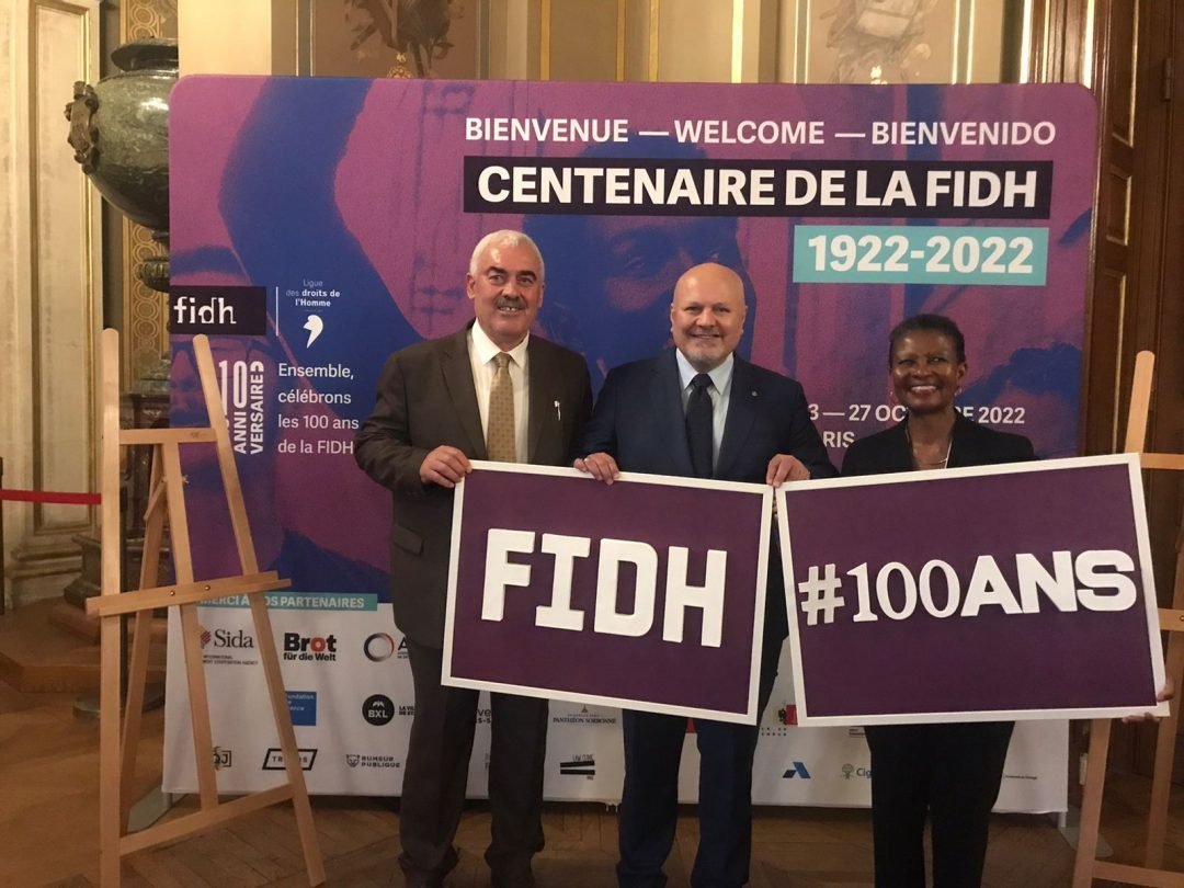 總部位在巴黎的國際人權聯盟(FIDH)23日晚間在巴黎市政府舉行創立100週年晚會,歐洲各國領袖與全球逾150位人權鬥士共襄盛舉,台灣駐法代表處作為貴賓受邀出席活動。