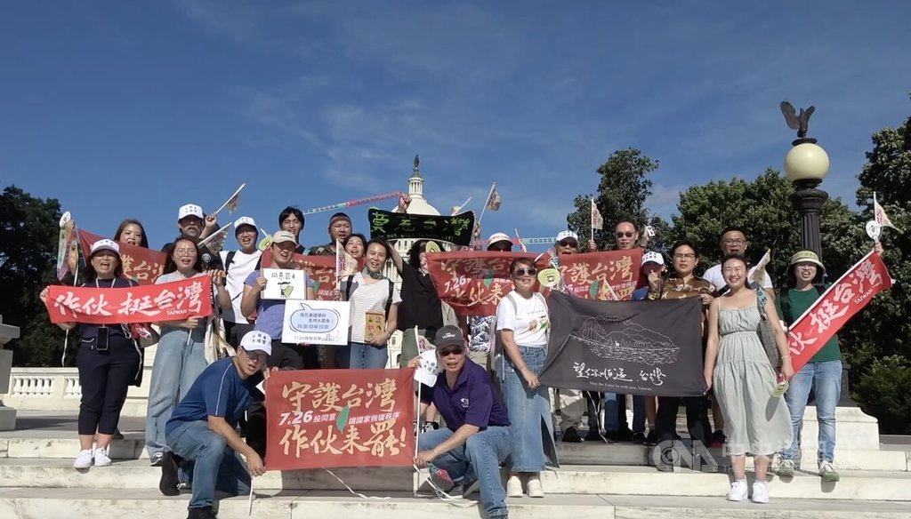 手持「我在美國華府支持大罷免、我要打十通電話拉票」看板又舉旗的陳同學,數年前因為對國際政治有興趣而來華府唸書,盼未來能替台灣在國際場域衝聲量。她受訪時表示,今天站出來的原因就是憂心自己可以發揮更大的影響力前,家園已經不在。