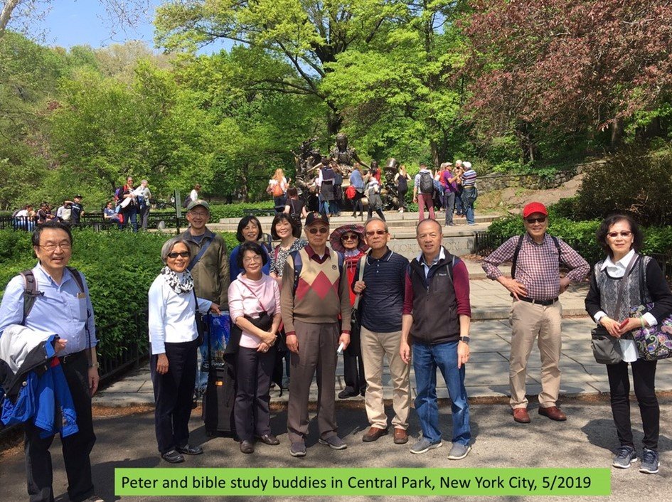 彭醫師說他現在正是橋水查經班的一員,他們在 COVID-19爆發前,還一起到紐約遊中央公園。