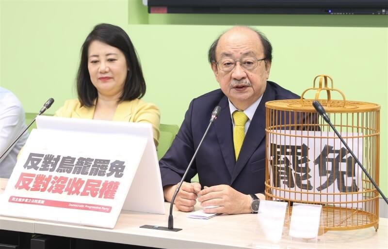 民進黨立法院黨團4日舉行「反對鳥籠罷免、反對沒收民權」記者會,黨團總召柯建銘(右)、幹事長吳思瑤(左)等人出席。中央社記者謝佳璋攝 113年7月4日