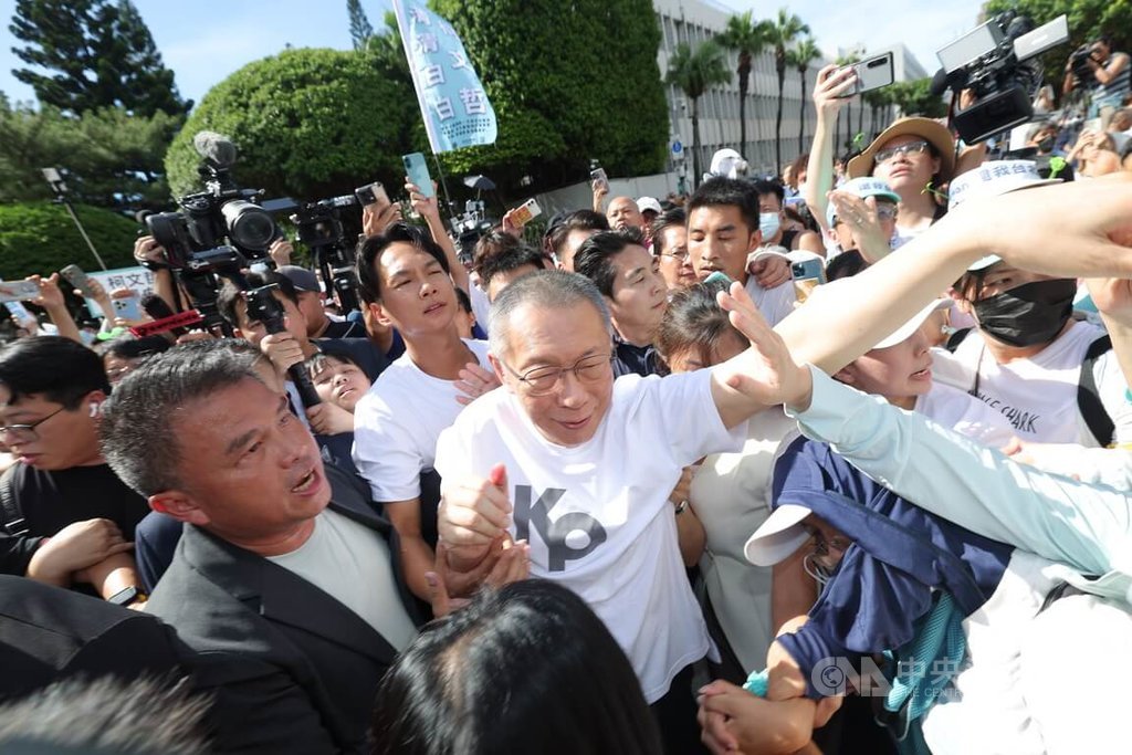 8日下午在妻子陳佩琪(前右)、民眾黨主席黃國昌(前左2)等人陪同下離開北院,隨後對外發表談話。中央社.jpg)