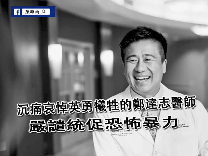 【沉痛哀悼英勇犧牲的鄭達志醫師●嚴譴統促恐怖暴力】
