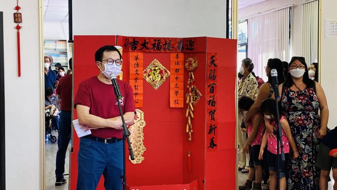 現場播放喜瑞都中文學校成人班課程花絮,以及展示具有年節特色的食物、舞龍舞獅及剪紙作品,並邀請到書法老師蔡季男現場揮毫,僑委會的虎年提燈及精美月曆也讓大、小朋友愛不釋手,氣氛十分熱鬧。
