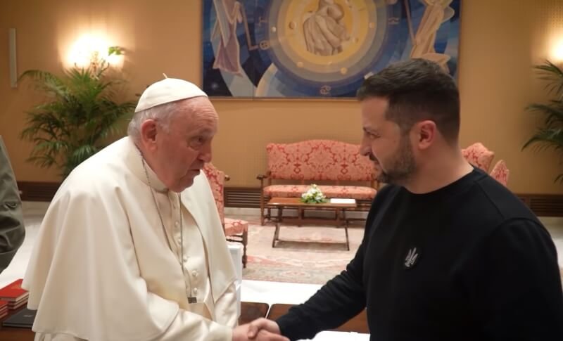 烏克蘭總統澤連斯基星期六在梵蒂岡與教宗方濟各舉行了會談。澤連斯基表示感到很榮幸,教宗過去表示會盡力試圖停止烏克蘭戰爭。