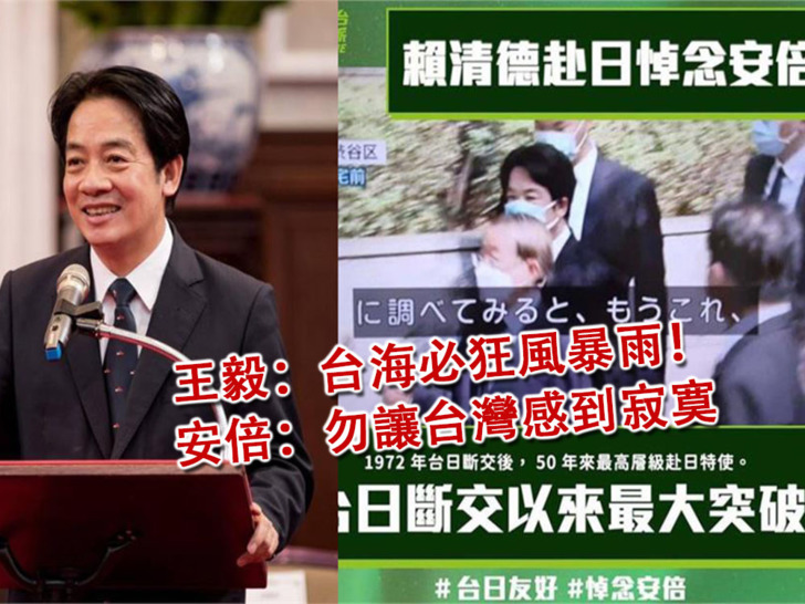 【王毅:台海必狂風暴雨!●安倍:勿讓台灣感到寂寞】