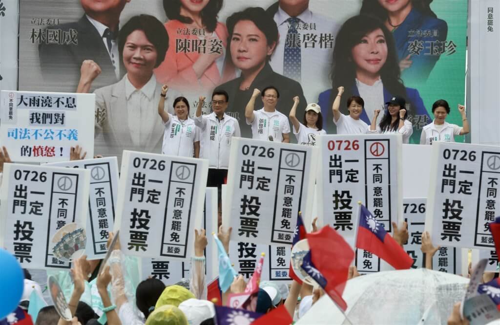 台灣民眾黨下午在民進黨中央黨部前舉辦「民主起義!反罷要贏 台灣要贏」活動,除民眾黨立法院黨團8席立委外,也邀請台北市的國民黨立委賴士葆、李彥秀、王鴻薇、徐巧芯、羅智強等人出席。