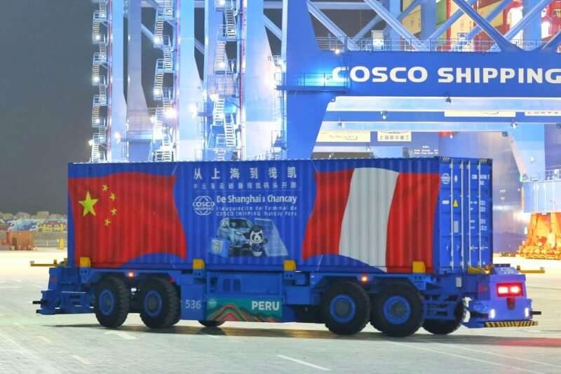 外媒此前報導,中國在秘魯興建錢凱港,可望加速亞洲和南美間貨貿,縮短運貨時間,也可為中國電動車和其他外銷品打開新市場,中國已是南美大部分國家的最大貿易夥伴。