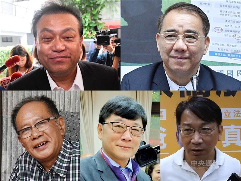 台北地方法院審理現任立法委員蘇震清(上左起)、廖國棟、陳超明(下左起)、趙正宇與前立委徐永明涉及貪污等案,合議庭將自16日起將案件進入辯論程序。(中央社檔案照片)