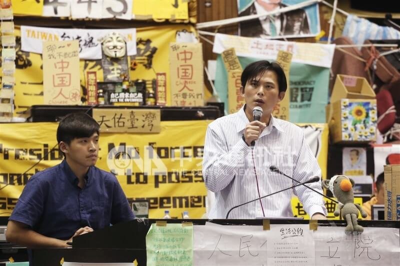 4月4日在立法院議場發表談話。左為反服貿學生團體代表陳為廷。(中央社檔案照片).jpg)