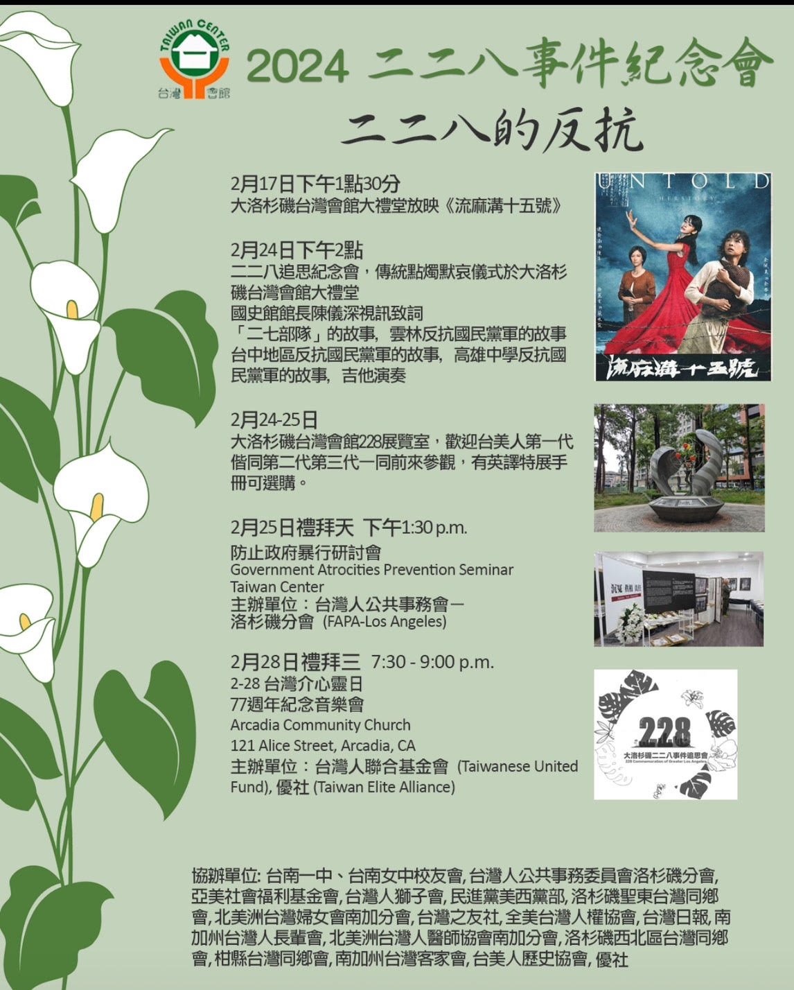 美國頭條台美人台加人國際要聞美國新聞大洛杉磯台灣會館2024大洛杉磯二二八事件紀念會暨系列活動 February 13, 2024 敬請支持‧歡迎訂閱本報newsletter 本報24/7隨時更新 歡迎定閱newsletter