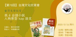 第78回 世界台灣文化論壇(台灣文學欣賞會) 主題: 我ê台語小說人物原型kap設定