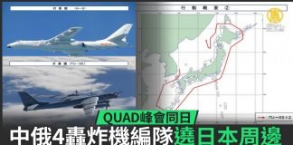 中俄軍機聯合飛行日本周邊上空