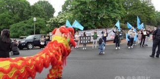 中國駐美使館開放 港人維族聚集抗議要揭真面目