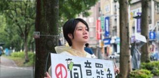 作家楊双子伴侶賴庭荷街頭舉牌宣傳罷免遭攻擊