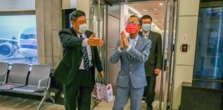 台灣駐泰代表李應元返國療養,雙手合十表示感謝