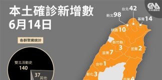 台灣6/14增185例本土確診