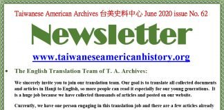 Taiwanese American Archives台美史料中心June 2020 newsletter issue No. 62
