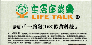 大洛杉磯台灣會館生活座談會:「一路發(168)飲食科技」