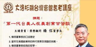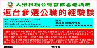大洛杉磯台灣會館耆老講座:8/17 洪茂澤、楊嘉猷談返台參選經驗