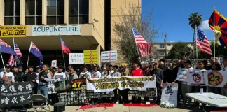 港人和民主人士在洛杉磯中領館外集會 聲援香港、抗議「23條」立法