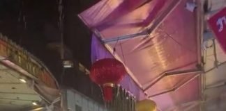 日月潭晚間下大雨,攤商急收拾居民歡呼[影]