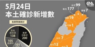 台灣本土確診個案24日新增334例,校正回歸256例[影]