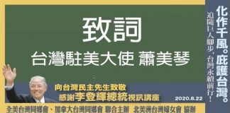 蕭美琴首度公開視訊台僑 盼提升台美印太安全合作