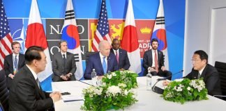 北約場邊,美日韓峰會同意強化合作應對北韓威脅