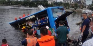 貴州公車突然轉向衝入水庫,救出36人已21死[影]