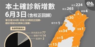 6/3台灣新增364例本土、219例校正回歸 17人染疫病逝