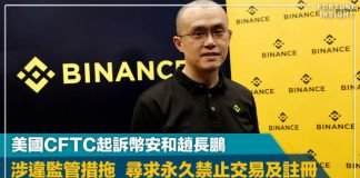 美監管機構起訴全球最大加密貨幣交易所Binance及趙長鵬本人